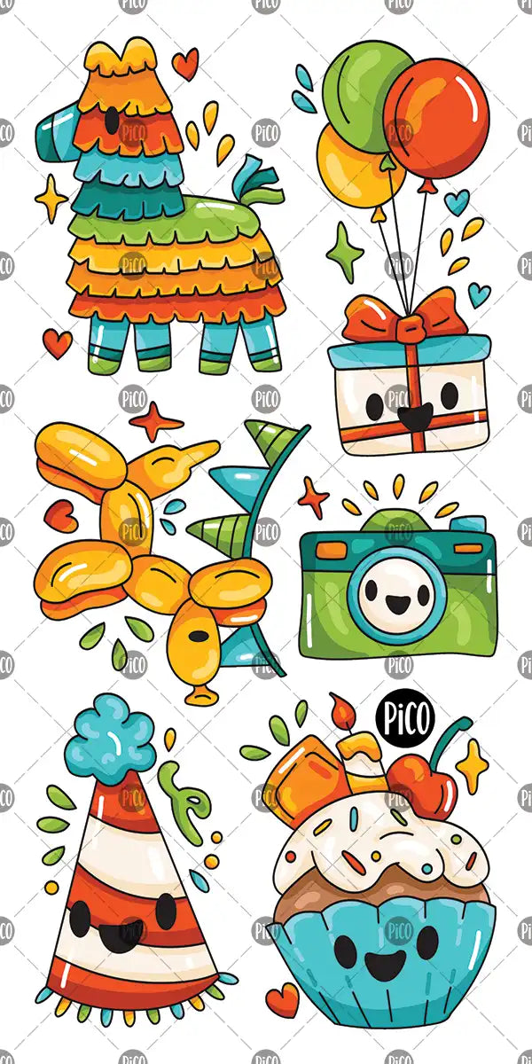 Get ready to celebrate! This tattoo set is perfect for birthdays: cupcakes, balloons, gifts, a camera and even a piñata—everything you need for a festive moment. It’s a fun little surprise to share with friends or to enjoy as a group activity. Pair it with our Animal Balloon tattoos for even more party fun, and why not add the giant Birthday colouring poster for extra excitement?