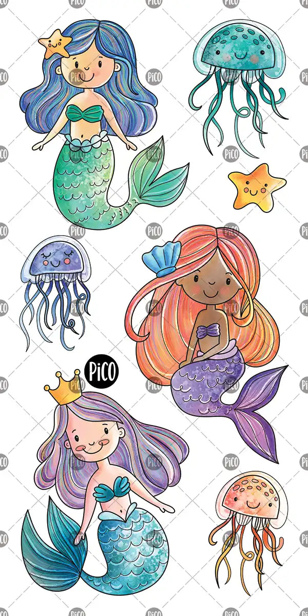 Sophia the Mermaid and her friends love playing in the water, especially when friendly jellyfish join the fun. Mermaids are great swimmers and adore every part of life under the sea. This set pairs beautifully with our Cat Mermaids or Mermaids tattoos. For ocean lovers, the giant colouring poster Under The Sea is also a wonderful addition.