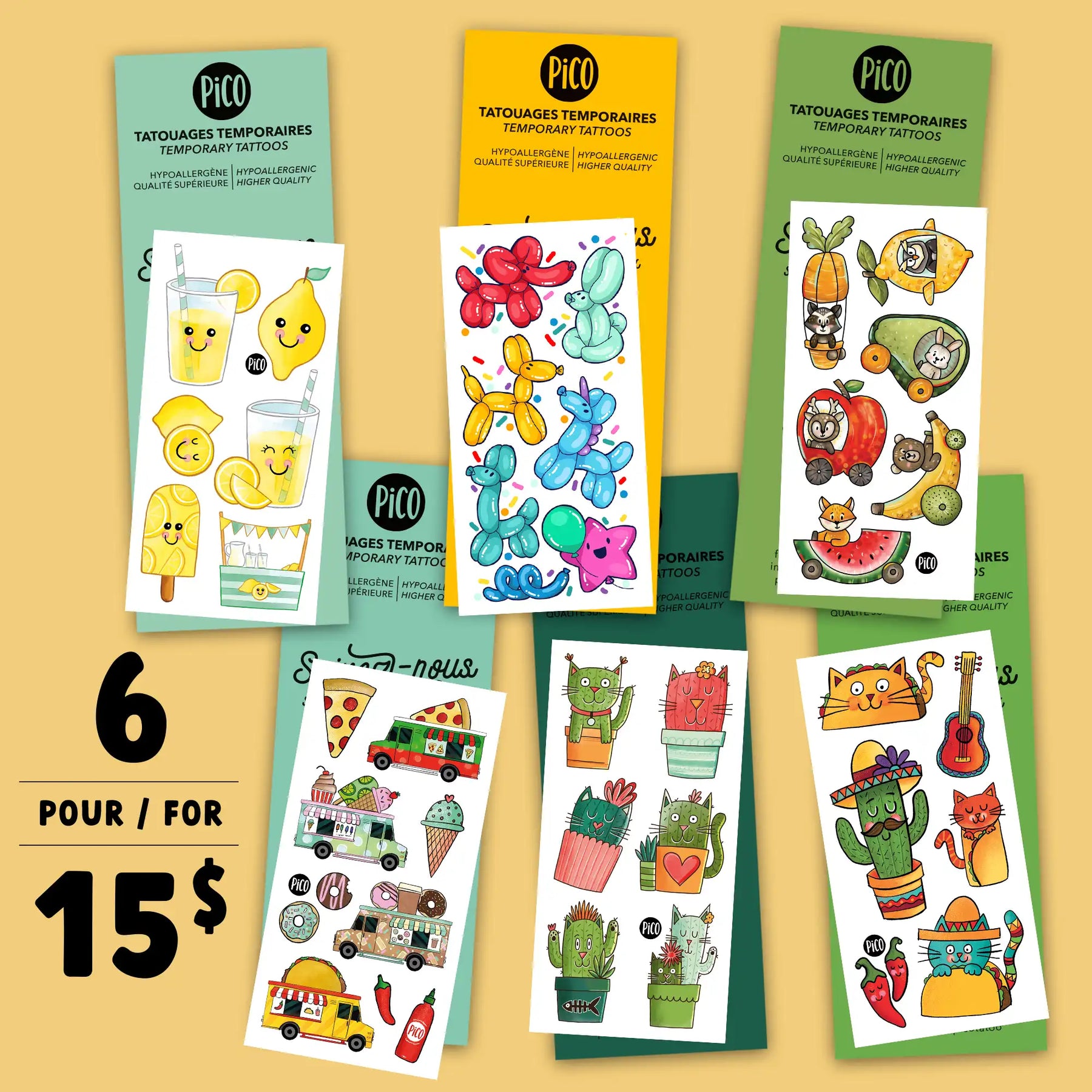 [{"id":402875023616,"handle":"lots-avantageux","updated_at":"2025-11-26T15:22:56-05:00","published_at":"2023-10-05T11:40:10-04:00","sort_order":"manual","template_suffix":"collection-lots","published_scope":"web","title":"Bundle Deals, Value Sets, \u0026 Discounted Lots","body_html":"Immerse yourself in the world of \u003cstrong\u003ePiCO Tatoo's Bundle Deals\u003c\/strong\u003e, where \u003cstrong\u003eyou'll find unbeatable savings\u003c\/strong\u003e on your favorite temporary tattoos. \u003cbr\u003e\u003cbr\u003eOur value sets are \u003cstrong\u003edesigned to provide you with more tattoos for less, ensuring you get the most value out of your purchase\u003c\/strong\u003e. Whether you're seeking a diverse collection of designs or want to stock up on your preferred tattoos, our discounted lots and assorted packs have you covered. \u003cbr\u003e\u003cbr\u003e\u003cstrong\u003eDon't miss out on these exclusive offers\u003c\/strong\u003e – explore our bundle deals today!","image":{"created_at":"2025-02-01T06:17:52-05:00","alt":"Nos Lots Avantageux : Économisez Sur Vos Tatouages Temporaires Préférés","width":1920,"height":880,"src":"\/\/www.picotemporarytattoos.com\/cdn\/shop\/collections\/Collections-LOT_AVANTAGEUX_79b057b0-4f43-4077-84bf-0d514900c092.webp?v=1738408672"}},{"id":395473256704,"handle":"all","title":"Explorez notre gamme complète de produits pour enfants","updated_at":"2025-11-26T15:22:56-05:00","body_html":"","published_at":"2023-03-10T14:00:24-05:00","sort_order":"best-selling","template_suffix":"","disjunctive":false,"rules":[{"column":"variant_price","relation":"greater_than","condition":"0"},{"column":"variant_inventory","relation":"greater_than","condition":"0"}],"published_scope":"global","image":{"created_at":"2025-02-01T06:18:05-05:00","alt":"Explorez notre gamme complète de produits pour enfants","width":5796,"height":1988,"src":"\/\/www.picotemporarytattoos.com\/cdn\/shop\/collections\/couverture-items-pico_2022_881a957f-9b29-4904-8fae-56e8e297cbe2.jpg?v=1738408685"}},{"id":233485140121,"handle":"solde","updated_at":"2025-11-26T15:22:56-05:00","published_at":"2020-11-19T11:33:09-05:00","sort_order":"price-asc","template_suffix":"collection-solde","published_scope":"web","title":"Shop Our Sale: Save Big on Stickers \u0026 Temporary Tattoos","body_html":"\u003cp\u003ePlongez dans une collection exclusive de \u003cstrong\u003etatouages éphémères et autocollants\u003c\/strong\u003e :\u003cbr data-mce-fragment=\"1\"\u003e\u003cbr data-mce-fragment=\"1\"\u003e\u003cstrong\u003eStyles captivants\u003c\/strong\u003e : Pour chaque personnalité.\u003cbr data-mce-fragment=\"1\"\u003e\u003cstrong\u003ePose simplifiée\u003c\/strong\u003e : Conçus pour être appliqués en toute simplicité.\u003cbr data-mce-fragment=\"1\"\u003e\u003cstrong\u003eConfort et sécurité\u003c\/strong\u003e : 100% testés et sans danger pour la peau.\u003c\/p\u003e\n\u003cp\u003e\u003cbr data-mce-fragment=\"1\"\u003eAvec \u003cstrong\u003ejusqu'à 50% de réduction\u003c\/strong\u003e, le moment n'a jamais été aussi propice pour exprimer votre style. Offre à saisir !\u003c\/p\u003e","image":{"created_at":"2025-02-01T06:18:00-05:00","alt":"Solde : tatouages éphémères \u0026 autocollants - PiCO Tatoo","width":1920,"height":880,"src":"\/\/www.picotemporarytattoos.com\/cdn\/shop\/collections\/BLACK_FRIDAY_a98bda41-9db8-4cd2-8253-fd1d1b1e0563.jpg?v=1749388224"}},{"id":204297175193,"handle":"tatouages-temporaires","title":"Tatouages temporaires pour une expression éphémère","updated_at":"2025-11-26T15:23:19-05:00","body_html":"\u003cp\u003e \u003c\/p\u003e\n\u003cstyle type=\"text\/css\" data-mce-fragment=\"1\"\u003e\u003c!--\ntd {border: 1px solid #cccccc;}br {mso-data-placement:same-cell;}\n--\u003e\u003c\/style\u003e\n\u003cp\u003e\u003cspan data-sheets-root=\"1\" data-sheets-value=\"{\u0026quot;1\u0026quot;:2,\u0026quot;2\u0026quot;:\u0026quot;Embarquez dans un voyage de style et de créativité avec la collection de tatouages temporaires de PiCO Tatoo. Chaque tatouage dans notre gamme représente une fusion parfaite d'art et de mode, offrant une manière amusante et sans engagement de transformer votre look. Que vous souhaitiez ajouter une touche de fantaisie à votre quotidien ou faire une déclaration audacieuse lors d'un événement spécial, nos tatouages temporaires sont le moyen idéal pour exprimer votre individualité.\\n\\nNotre collection variée comprend des designs pour tous les goûts, des motifs délicats et minimalistes aux créations audacieuses et colorées. Faciles à appliquer et à enlever, ces tatouages offrent une flexibilité incomparable pour changer de style au gré de vos envies. Chaque pièce est conçue pour impressionner, en alliant qualité artistique et tendances actuelles.\\n\\nDécouvrez l'univers des tatouages temporaires de PiCO Tatoo et laissez-vous inspirer par notre sélection. Que vous recherchiez un accessoire unique pour une soirée ou un moyen d'exprimer votre personnalité au quotidien, notre collection a quelque chose pour chaque occasion. Explorez notre gamme dès maintenant et trouvez votre prochain tatouage temporaire coup de cœur chez PiCO Tatoo.\\n\u0026quot;}\" data-sheets-userformat='{\"2\":15293,\"3\":{\"1\":0},\"5\":{\"1\":[{\"1\":2,\"2\":0,\"5\":{\"1\":2,\"2\":10066329}},{\"1\":0,\"2\":0,\"3\":3},{\"1\":1,\"2\":0,\"4\":1}]},\"6\":{\"1\":[{\"1\":2,\"2\":0,\"5\":{\"1\":2,\"2\":10066329}},{\"1\":0,\"2\":0,\"3\":3},{\"1\":1,\"2\":0,\"4\":1}]},\"7\":{\"1\":[{\"1\":2,\"2\":0,\"5\":{\"1\":2,\"2\":10066329}},{\"1\":0,\"2\":0,\"3\":3},{\"1\":1,\"2\":0,\"4\":1}]},\"8\":{\"1\":[{\"1\":2,\"2\":0,\"5\":{\"1\":2,\"2\":10066329}},{\"1\":0,\"2\":0,\"3\":3},{\"1\":1,\"2\":0,\"4\":1}]},\"10\":1,\"11\":4,\"12\":0,\"14\":{\"1\":2,\"2\":0},\"15\":\"Arial\",\"16\":10}' data-mce-fragment=\"1\"\u003eEmbarquez dans un voyage de style et de créativité avec la collection de tatouages temporaires de PiCO Tatoo. Chaque tatouage dans notre \u003cstron